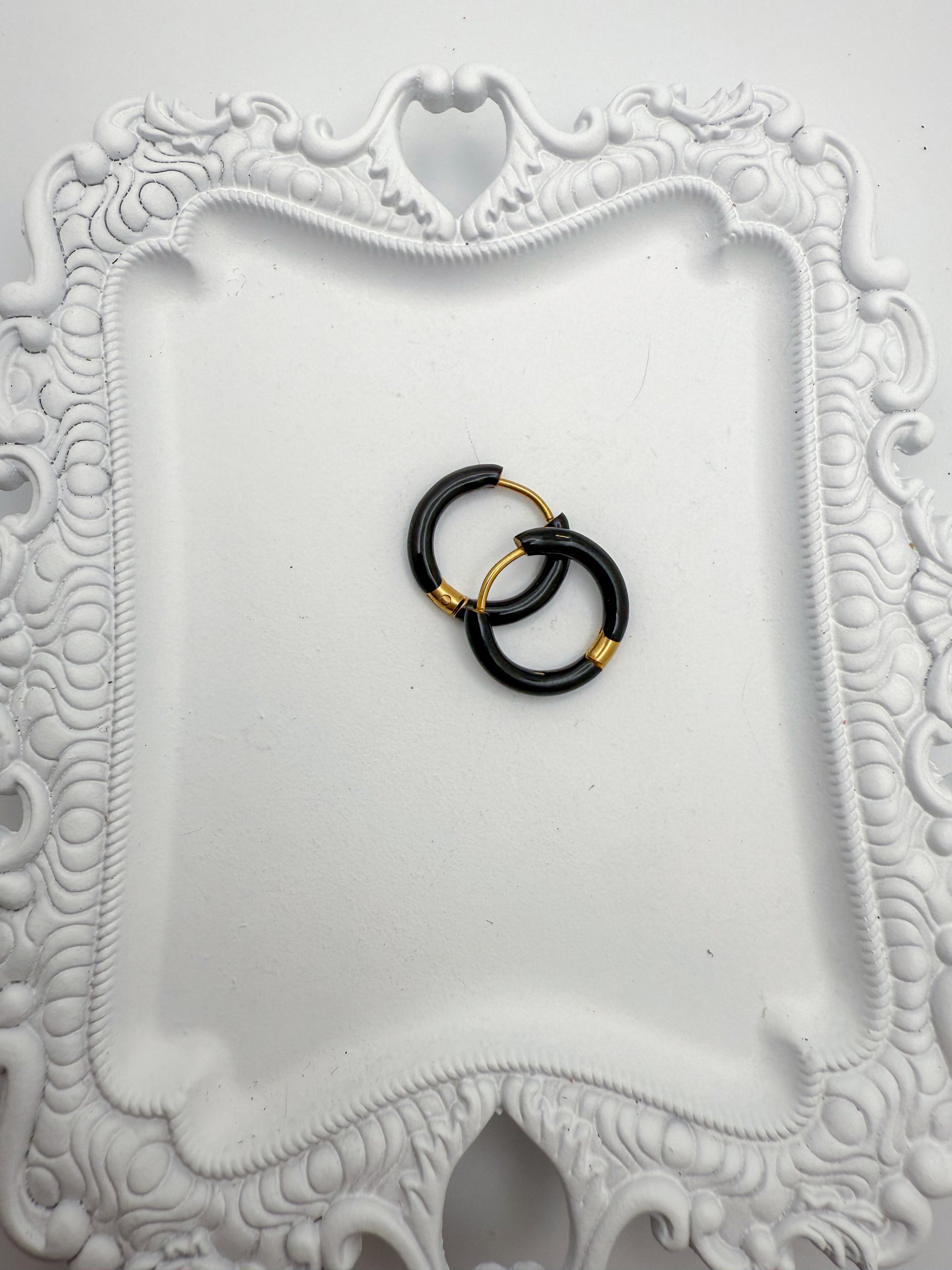 Enamel Huggies on gold plated stainless steel. 12 mm.